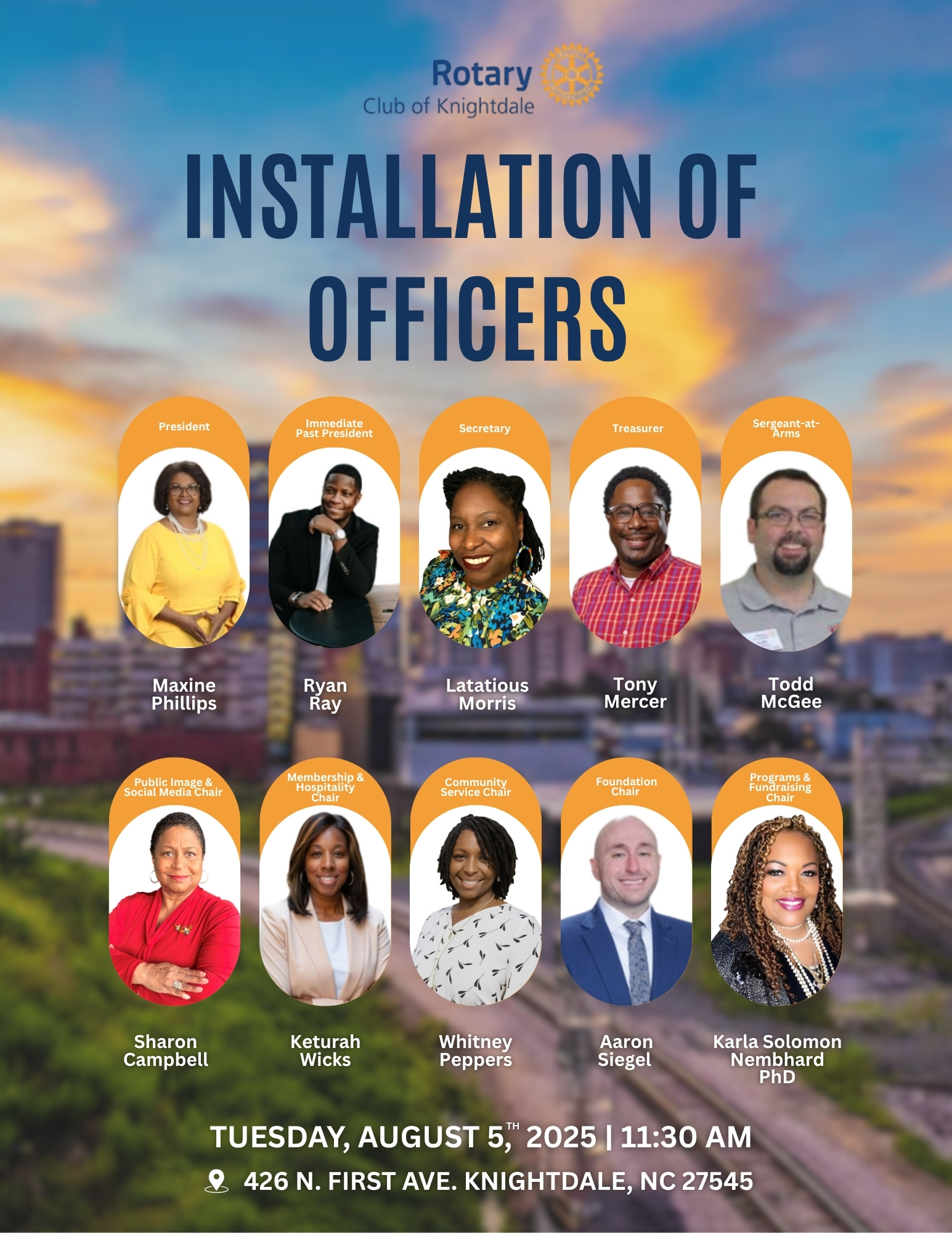This year, I am proud to champion a Rotary journey rooted in meaningful community engagement, committed to addressing food insecurities, and dedicated to empowering future generations through sustained youth leadership. These pillars will guide our efforts, shape our programs, and deepen our impact across Knightdale, NC and beyond.